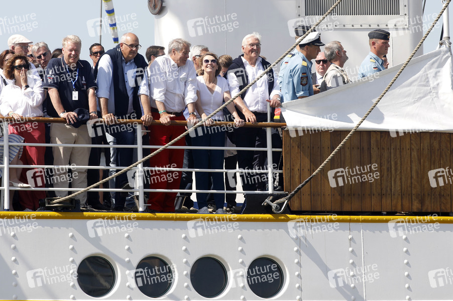 Frank-Walter Steinmeier mit Ehefrau Elke Büdenbender bei der Eröffnung der Sail Bremerhaven 2025 mit Begrüßungszeremoniell und Segeltörn auf der 'Gorch Fock', Besichtigung des Seenotrettungskreuzers 'Hermann Rudolf Meyer' und Empfang auf der Fregatte 'Bayern'. Bremerhaven, 13.08.2025