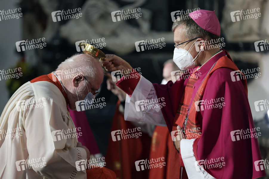 Reinhard Kardinal Marx (Erzbischof von Muenchen und Freising) und Dr. Michael Gerber (Bischof von Fulda) bei der Schlussvesper mit Bonifatiussegen im Rahmen der Herbst-Vollversammlung der Deutschen Bischofskonferenz im Dom St. Salvator zu Fulda. Fulda, 23.09.2021