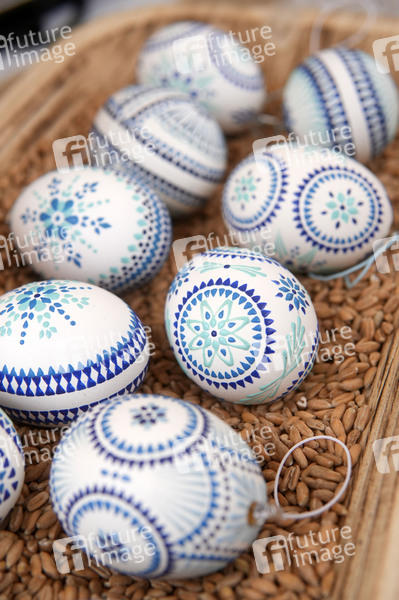 Sorbische Ostereier von Kugelei.com. Das Gelbe vom Ei - kunsthandwerklicher Ostermarkt auf dem Karl-August-Platz in Charlottenburg (Symbolfoto, Themenfoto). Berlin, 24.03.2024