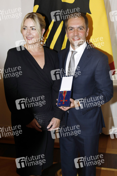 Philipp Lahm mit Ehefrau Claudia Lahm bei der Verleihung des Verdienstkreuzes am Bande der Bundesrepublik Deutschland an Philipp Lahm im Schloss Bellevue. Berlin, 01.10.2025