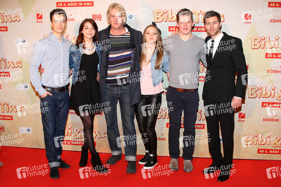 Louis Held, Lisa-Marie Koroll, Detlev Buck, Lina Larissa Strahl, Max von der Groeben und Fabian Buch bei der Premiere des Kinofilms 'Bibi & Tina' im Cinemaxx am Dammtor. Hamburg, 02.03.2014
