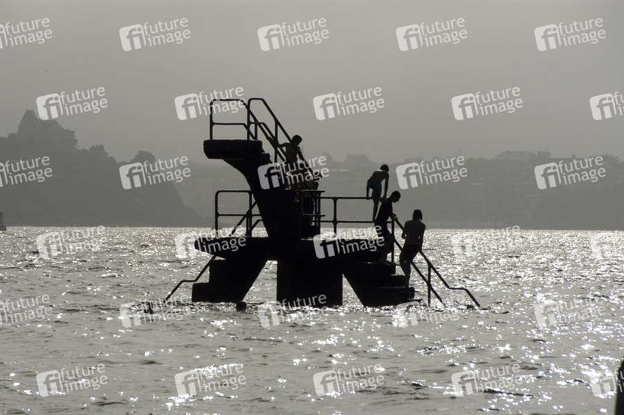Meer, Atlantik, Sprungturm, Badende, Gegenlicht