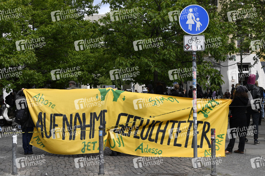 Auf dem Rosa-Luxemburg Platz haben sich 50 Demonstranten versammelt, um gegen Verschwörungstheoretiker zu demonstrieren. Die Polizei hat den Platz abgeriegelt und kontroliert jeden, der ihn betreten will. Am Samstag sind rund um den Rosa-Luxemburg-Platz mehrere 'Hygienedemos' und Gegenproteste geplant. Am Alexanderplatz sollen ab 14 Uhr insgesamt zehn Kundgebungen starten. Berlin, 16.05.2020