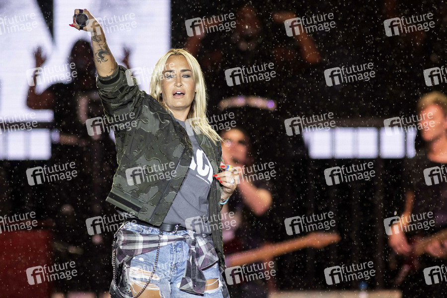 Sarah Connor live bei einem Konzert ihrer 'Herz Kraft Werke'-Tour beim Apoldaer Musiksommer 2022 auf der Festwiese in der Herressener Promenade. Apolda, 05.08.2022