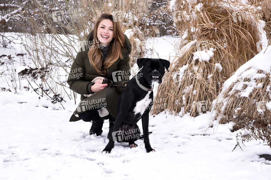 Lena Meckel mit ihrem Hund Ludwig beim Winterspaziergang im Ostpark. München, 07.01.2021