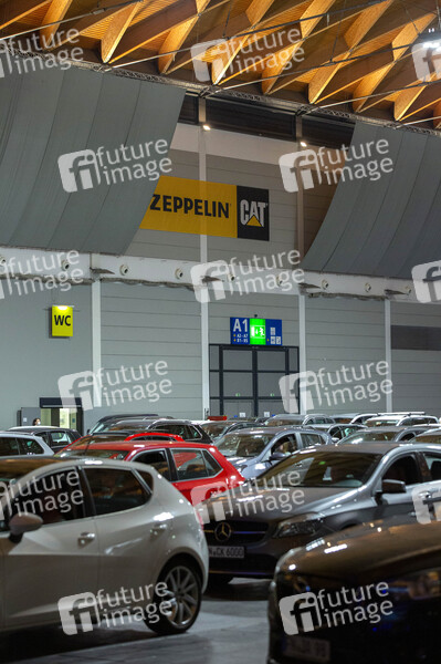 Konzertbesucher beim Radio 7 Autokino Konzert von Lotte in der Zeppelin Cat Halle der Messe Friedrichshafen. Friedrichshafen, 27.05.2020