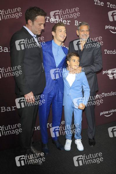 Ben Affleck, Tye Sheridan, Daniel Ranieri und George Clooney bei der Premiere des Kinofilms 'The Tender Bar' im DGA Theater Complex. Los Angeles, 03.10.2021
