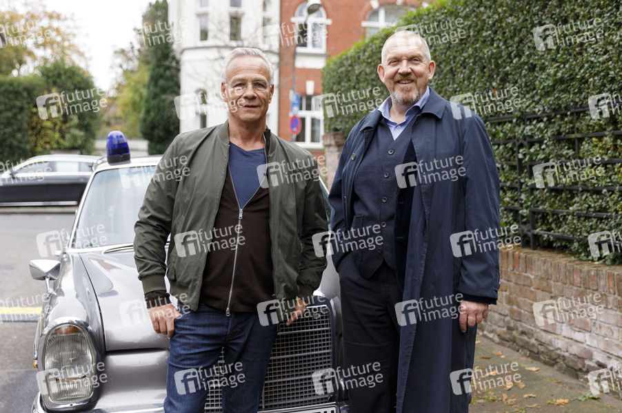 Klaus J. Behrendt und Dietmar Bär beim Fototermin am Set des ARD-Krimis 'Tatort - Gefangen' in Braunsfeld. Köln, 15.10.2019