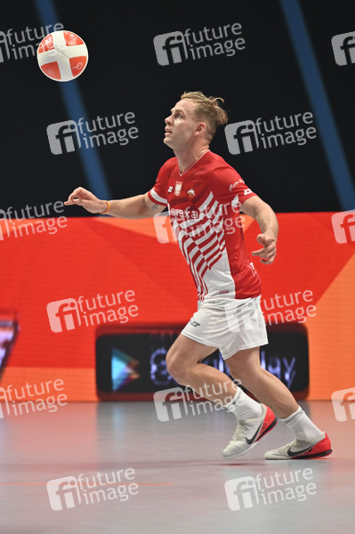Adrian Duszak (Polen) beim Man Single Finale Rumanien vs Polen bei der Teqball Weltmeisterschaft 2022 in der Kia Metropole Arena. Nürnberg, 27.11.2022