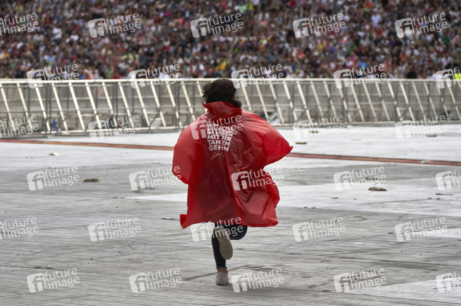 Prominenz, Celebrity, Celebrities, Musik, Konzert, Auftritt, Bühne, Stage, live, Unterhaltung, Entertainment, Kultur, Open Air, Stadionkonzert, Unwetter, Starkregen, Evakuierung