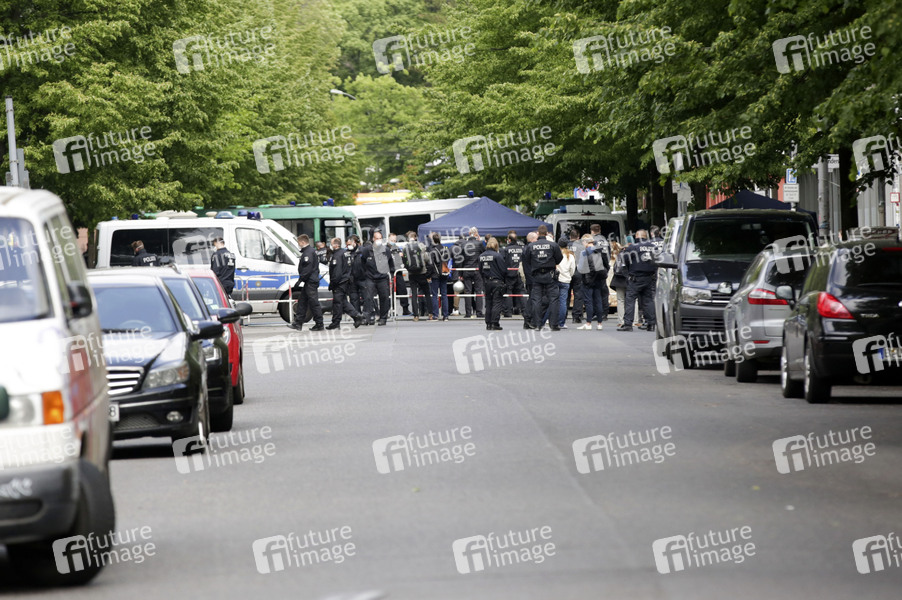 Auf dem Rosa-Luxemburg Platz haben sich 50 Demonstranten versammelt, um gegen Verschwörungstheoretiker zu demonstrieren. Die Polizei hat den Platz abgeriegelt und kontroliert jeden, der ihn betreten will..Am Samstag sind rund um den Rosa-Luxemburg-Platz mehrere 'Hygienedemos' und Gegenproteste geplant. Am Alexanderplatz sollen ab 14 Uhr insgesamt zehn Kundgebungen starten. Berlin, 16.05.2020