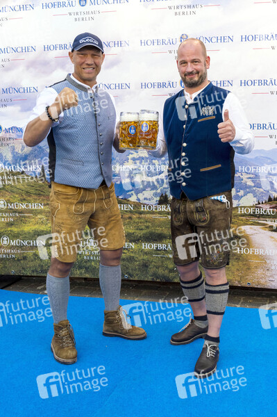Axel Schulz und Björn Schwarz beim Fassanstich bei der 9. Hofbräu Berlin Wiesn im Hofbräu Wirtshaus Berlin. Berlin, 19.09.2020