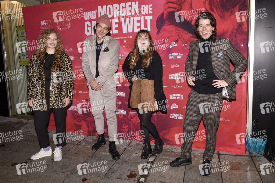 Luisa-Celine Gaffron, Noah Saavedra, Mala Emde und Tonio Schneider mit Team bei der Preview des Kinofilms 'Und morgen die ganze Welt' im City Kino. München, 29.10.2020