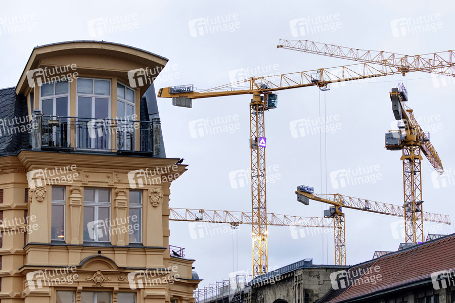 Eine Baustelle mit Baukränen in der Berliner Innenstadt. Die Bauwirtschaft ist seit Jahren ein wichtiger Wachstumstreiber für die deutsche Konjunktur und durch die Coronakrise und die auf Baustellen einzuhaltenden Corona-Regeln unter Druck geraten. (Themenbild, Symbolbild) Berlin, 27.01.2021