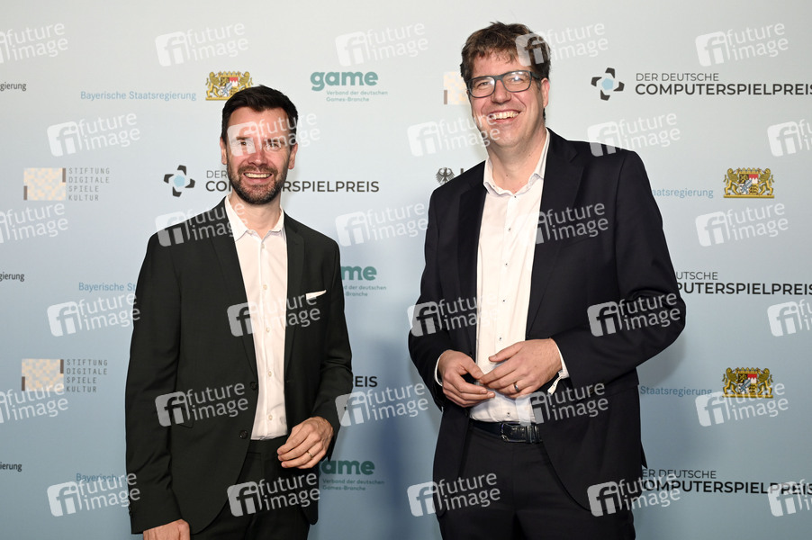 Felix Falk und Michael Kellner bei der Verleihung des Deutschen Computerspielpreises 2022 in der TonHalle. München, 31.03.2022
