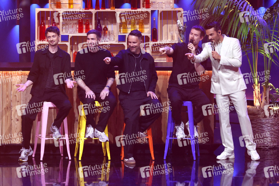 Revolverheld und Giovanni Zarrella in der ZDF-Musikshow 'Die Giovanni Zarrella Show - Die große Sommerparty' in der Westfalenhalle. Dortmund, 23.08.2025