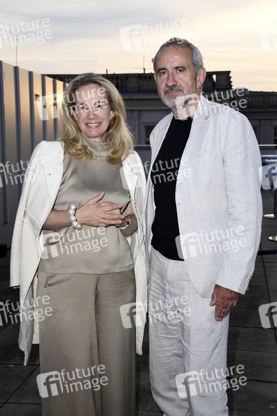 Sarah Wedl-Wilson und Hermann Parzinger beim Eröffnungsempfang der UFA Filmnächte 2025 auf der Dachterrasse der Bertelsmann Repräsentanz. Berlin, 27.08.2025