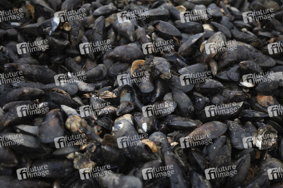 Gemeine Miesmuschel, Muscheln, Mytilidae, Mytilus edulis, Gehäuse, Speise, Miesmuschelbänke, Muschelfleisch, blutdrucksenkend, gewichtsreduzierend, Nährstoffe, Weichtiere, Muschelgerichte, Muschelvergiftung, Symbolbild, Themenbild