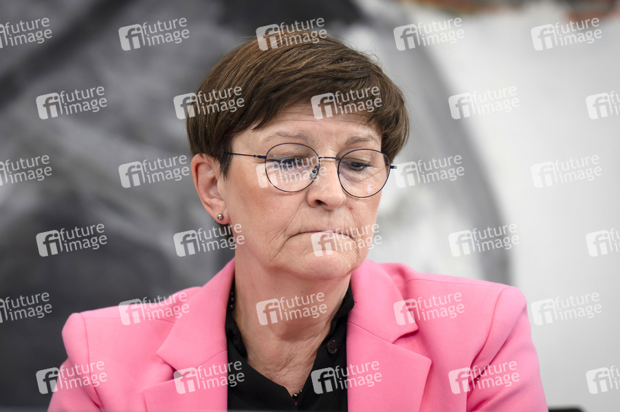 Saskia Esken bei der Pressekonferenz nach der ersten Sitzung des Koalitionsausschusses von Union und SPD im Kanzleramt. Berlin, 28.05.2025