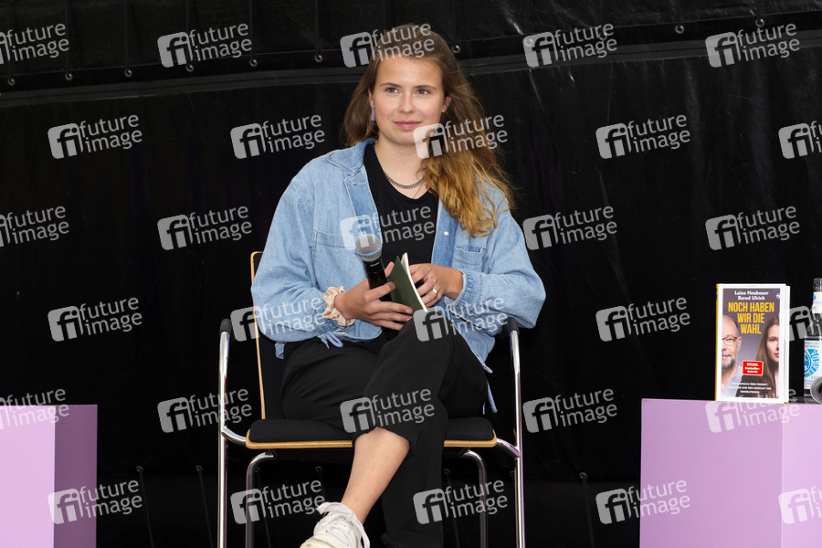 Luisa Neubauer bei der Buchvorstellung 'Noch haben wir die Wahl' im Rahmen des Kulturprojekts Wissensstadt Berlin 2021 am Platz vor dem Roten Rathaus vor. Berlin, 29.07.2021