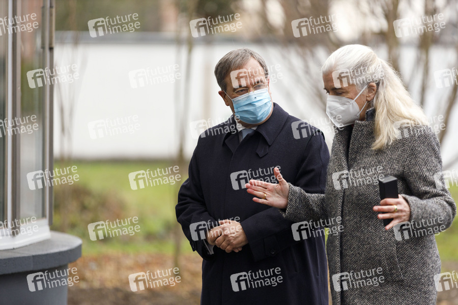 Armin Laschet und Isabel Pfeiffer-Poensgen bei einem Pressestatement vor dem Universitätsklinikum Düsseldorf. In Rekordzeit hat das UKD eine räumlich vollständig getrennte Neubau-Einheit zur Versorgung von COVID-19-Patienten erbaut. Das Gebäude bietet 18 Intermediate-Care-Plätze und 25 Intensivplätze. Damit verfügt das Universitätsklinikum über eine der modernsten Intensiveinheiten Europas. Düsseldorf, 30.12.2020