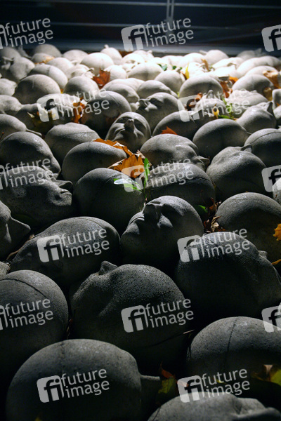 Kunstwerk nach dem Kopf des Künstlers 1980-1994, Feld mit weißen Köpfen aus Stein