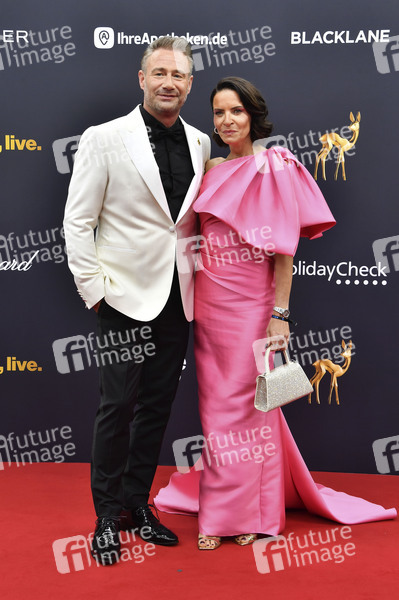 Sasha mit Ehefrau Julia Röntgen bei der 76. Bambi-Verleihung 2024 in den Bavaria Filmstudios. München, 07.11.2024