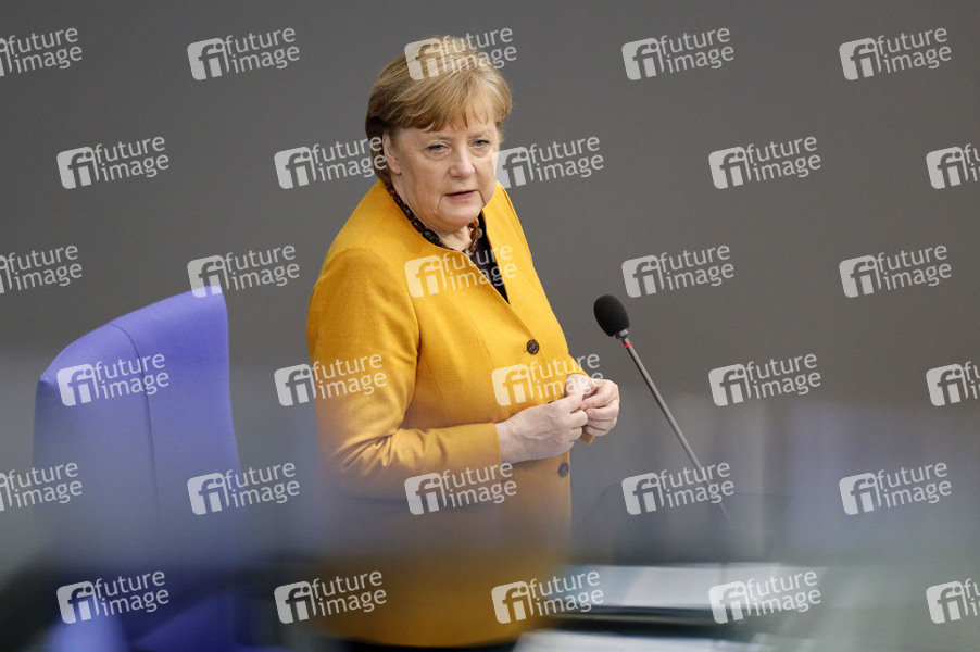 Angela Merkel in der 217. Sitzung des Deutschen Bundestages im Reichstagsgebäude. Berlin, 24.03.2021