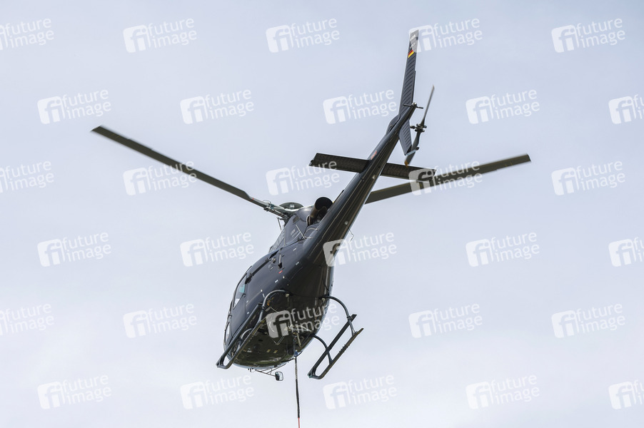 Eurocopter AS-350B3e Ecureuil beim Fototermin 'Helikopter fliegt Signalmaste für das neue Elektronische Stellwerk in Bonn-Beuel ein'. Es beginnt letzte große Bauphase vor der Generalsanierung der rechten Rheinstrecke im Jahr 2026. Mit Hilfe eines Helikopters werden knapp 50 Signalmaste für das neue ESTW Bonn-Beuel eingeflogen. Bonn, 14.06.2025