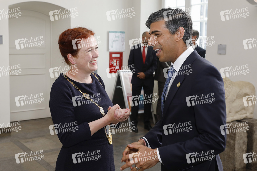 Katja Dörner und Rishi Sunak beim Bildtermin vom Eintrag einiger G7-Finanzminister und Notenbankgouverneure ins Goldene Buch der Stadt Bonn im Alten Rathaus. Bonn, 19.05.2022