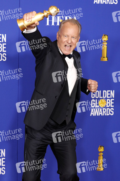 Stellan Skarsgard mit dem Preis für den besten Schauspieler in einer Nebenrolle in 'Chernobyl' bei der Verleihung der 77. Golden Globe Awards im Beverly Hilton Hotel. Beverly Hills, 05.01.2020