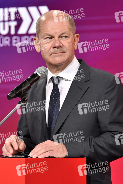 Olaf Scholz beim Pressestatement zum Auftakt des Europa-Wochenendes der SPE-Konferenz unter dem Motto 'Mit Mut. Für Europa' in der Station Berlin. Berlin, 25.06.2021