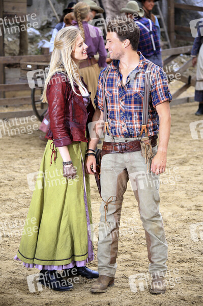 Larissa Marolt und Raul Richter beim Pressetermin der Karl-May-Spiele 2019 mit Szenen aus 'Unter Geiern - Der Sohn des Bärenjägers' im Freilichttheater am Kalkberg. Bad Segeberg, 21.06.2019