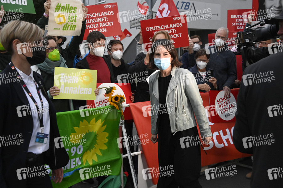 Politik, Wahl, Wahlkampf, Partei, Wahlkampfveranstaltung, Parteienwerbung, Kampagne, Wahlen, Bundestagswahlkampf, Bundestagswahl, Bundestagswahlen, TV-Triell, TV-Duell, Talk, Gespräch, Talkrunde, Gesprächsrunde, Diskussion, TV, Fernsehen, Politikerin, Kandidatin, Kanzlerkandidatin, MdB, Mitglied des Bundestages, Bundesvorsitzende Bündnis 90/Die Grünen