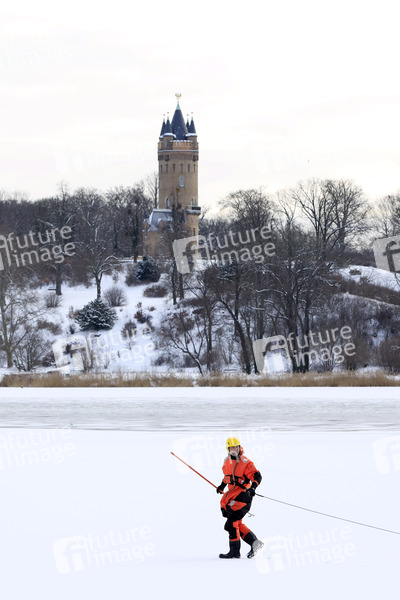 Eisrettung, Rettung, Berufsfeuerwehr Potsdam, Schiffbauergasse, Feuerwehr, Havel, Fluss, Tiefer See, Winter, Schnee, Eis, Kälte, Landschaft, See, Schnee, Glätte, kalt, Winter, Winterlandschaft, Eisfläche, zugefrorener See, Eisflächen, zugefrorene Seen, Dauerfrost, Eisdecke, Gefahr, Gewässer, gefroren, zugefroren, Wetter, Winterwetter, Wetterlage, Frost