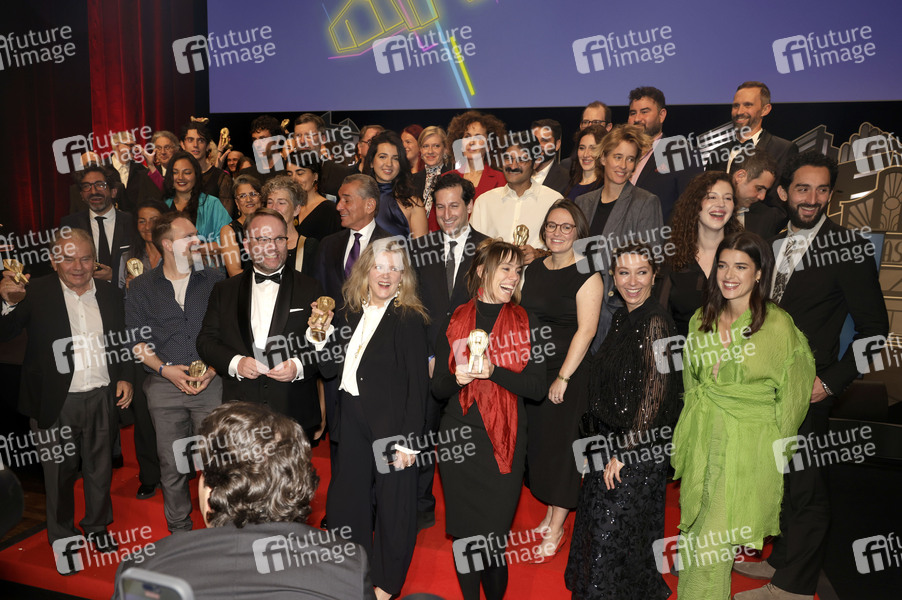 Die Preisträger und Laudatoren bei der 35. Verleihung des Hessischen Film- und Kinopreises 2024 in der Alten Oper. Frankfurt am Main, 18.10.2024