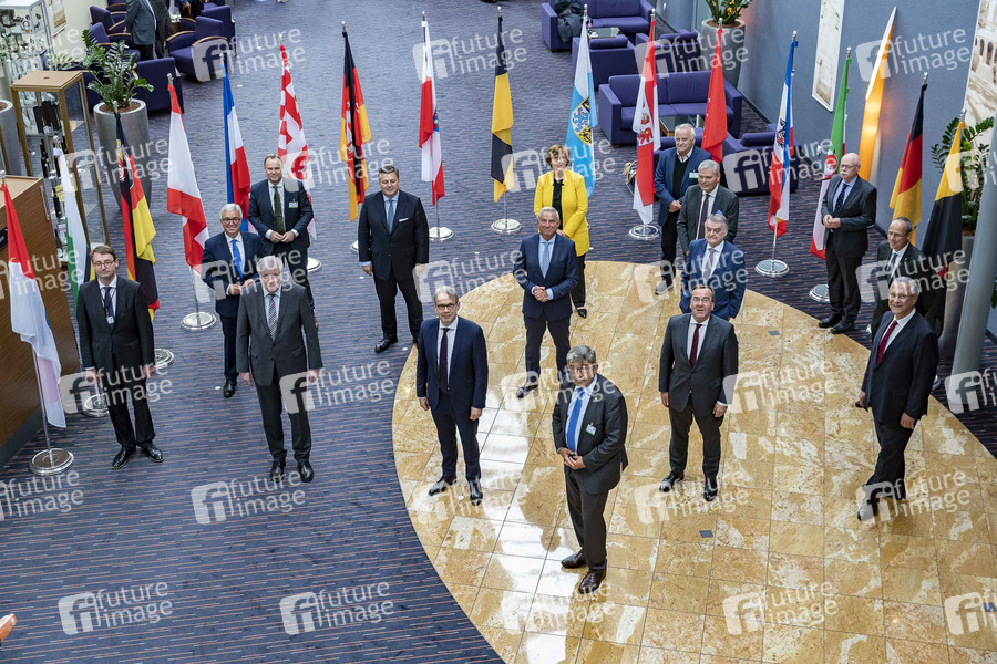 Horst Seehofer mit den innenministern der Bundesländer beim Pressetermin im Rahmen der Innenministerkonferenz Thüringen 2020 im Dorint Hotel. Erfurt, 18.06.2020