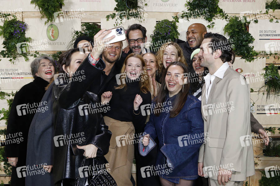 Emilia Schüle, Karoline Herfurth, Anneke Kim Sarnau, Rurik Gislason und das Filmteam von 'Wunderschöner' bei der Medienboard Party 2025 im Rahmen der Berlinale 2025 am Holzmarkt. Berlin, 15.02.2025
