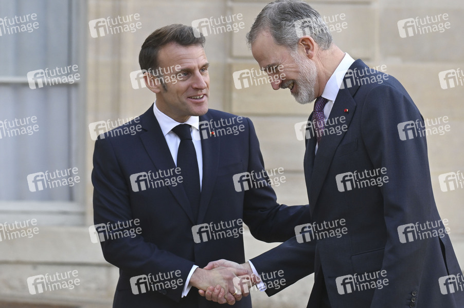 Emmanuel Macron und König Felipe VI. von Spanien beim Empfang vom spanischen König zu einem Arbeitsessen im Élysée-Palast. Paris, 13.01.2026