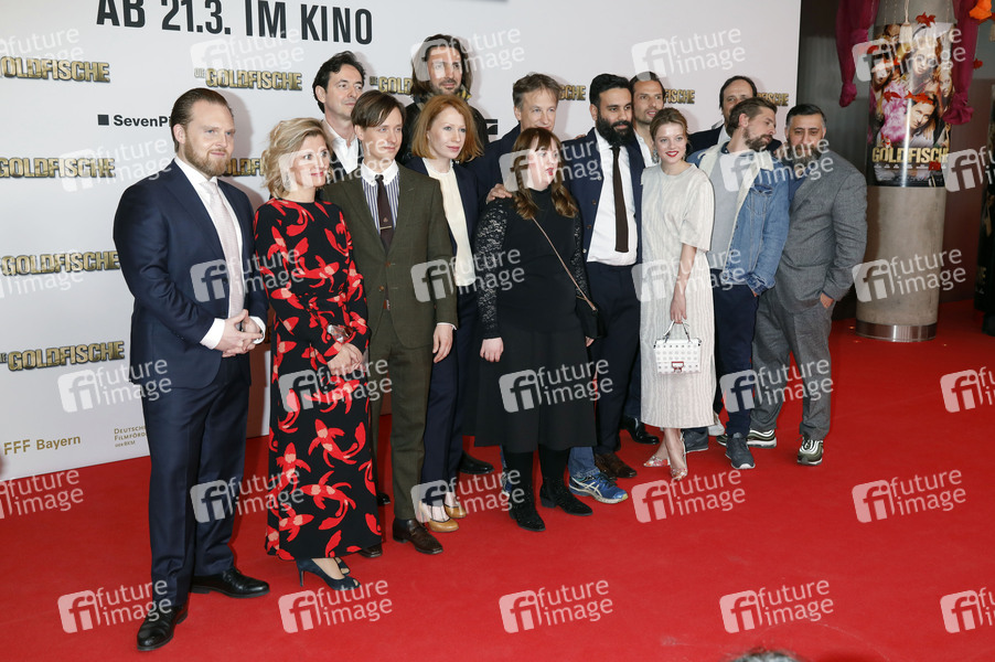 Axel Stein, Justyna Müsch, Martin Bachmann, Tom Schilling, Birgit Minichmayr, Max Wiedemann, Luisa Wöllisch, Jan Henrik Stahlberg, Alireza Golafshan, Quirin Berg, Jella Haase, Klaas Heufer-Umlauf und Kida Khodr Ramadan bei der Weltpremiere des Kinofilms 'Die Goldfische' im Mathäser Filmpalast. München, 13.03.2019