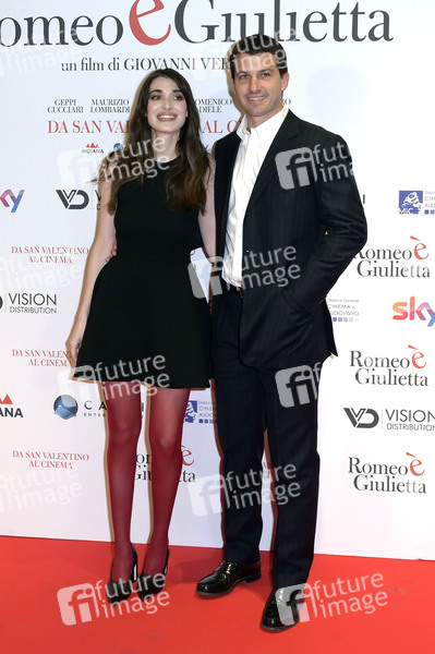 Pilar Fogliati mit Partner Severiano Recchi bei der Premiere des Kinofilms 'Romeo è Giulietta' im Space Cinema Moderno. Rom, 14.02.2024