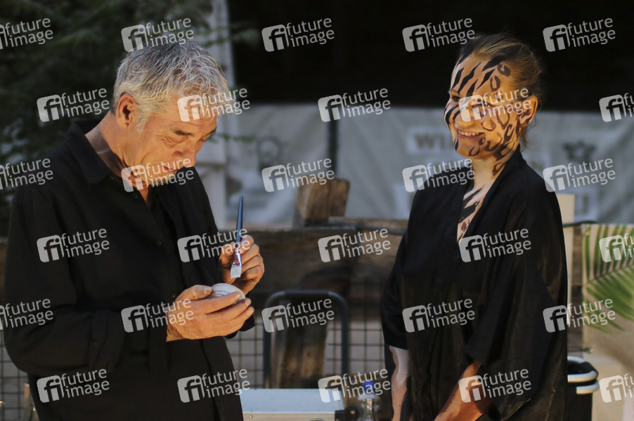 Jörg Düsterwald mit Model Katey bei einer Bodypainting-Performance bei der 'Nacht der Erlebnisse' im Erlebnis-Zoo Hannover. Hannover, 10.06.2022