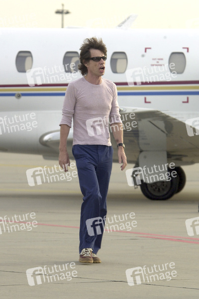 Mick Jagger bei der Ankunft der Rolling Stones auf dem Flughafen Hannover-Langenhagen, 07.08.2003