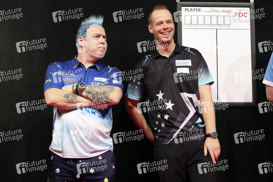 Peter Wright / Snakebit und Max Hopp / The Maximiser bei der World Darts Gala 2019 in der Westfalenhalle. Dortmund, 07.12.2019