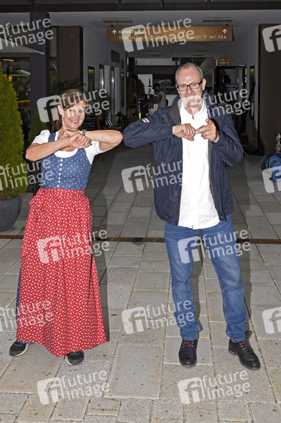 Barbara Weinzierl und Jörg Schneider bei einem exklusiven Fototermin in Berchtesgaden, wo gerade die Dreharbeiten zur Fernsehserie 'Watzmann ermittelt' nach dem Corona Lockdown wieder aufgenommen wurden. Berchtesgaden, 01.07.2020