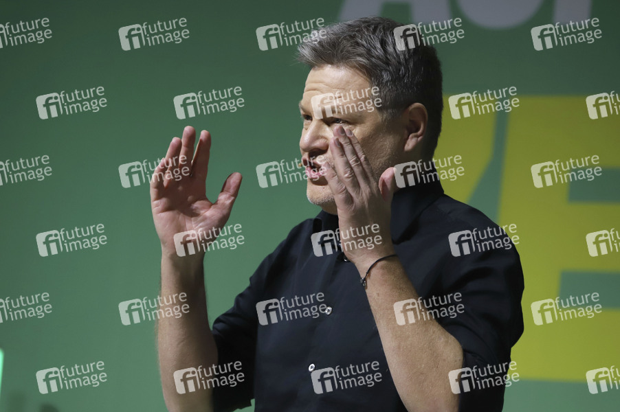 Robert Habeck beim Wahlkampfhöhepunkt der Bundestagswahl von Bündnis 90/Die Grünen in der Fischauktionshalle. Hamburg, 21.02.2025