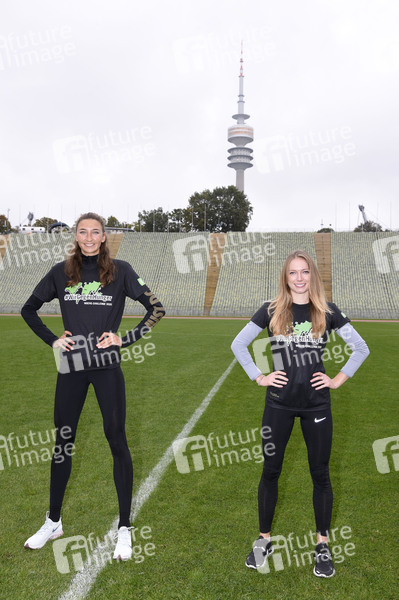 Christina Hering und Katharina Trost beim Fototermin zur sportichen '#WocheChallenge' im Olympiastation München. Unter dem Motto 'Wir können was bewegen!' ruft die Welthungerhilfe zu dieser Challenge auf und bittet um Spenden für eine Welt ohne Hunger. München, 13.10.2020