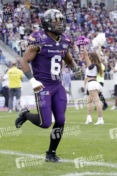 Darren Okoegual (6) beim American Football-Spiel Frankfurt Galaxy gegen Cologne Centurions in der PSD Bank Arena Frankfurt. Frankfurt am Main, 13.07.2024