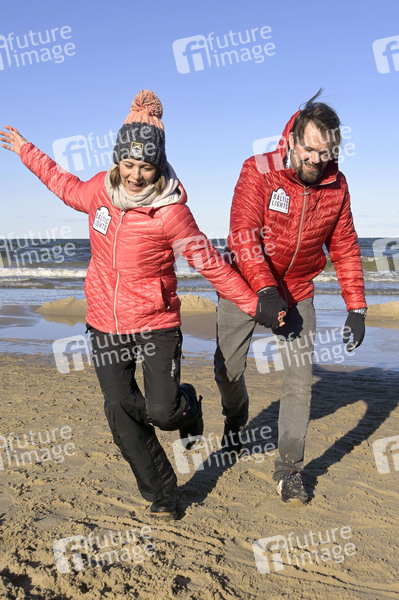 Jessica Ginkel mit Ehemann Daniel Fehlow beim Baltic Lights 2023 Charity-Hunderennen zu Gunsten der Welthungerhilfe zwischen der Seebrücke Ahlbeck und der Seebrücke Heringsdorf. Heringsdorf, 04.03.2023