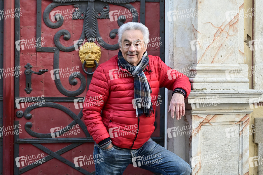 Giso Weißbach beim Spaziergang zum Set von 'Sachsens Glanz und Preußens Gloria'. Giso Weißbach feiert im nächsten Jahr sein 60-jähriges Bühnenjubiläum. Der gebürtige Erzgebirger kehrte am 08.03.2024 an das Set des sechsteiligen Fernsehfilms 'Sachsens Glanz und Preußens Gloria' zurück, welcher auf historische Ereignisse der Jahre 1697 bis 1763 zurückgeht. Die Literaturverfilmung, basierend auf dem Roman von Józef Ignacy Kraszewski, wurde unter Regie von Hans-Joachim Kasprzik in den Jahren 1982-1985 produziert. Die Szene im Siebenjährigen Krieg, in der Giso Weißbach alias Leutnant Sigismund von Miltitz um die Gunst seiner großen Liebe Komtesse Pepita von Nostitz, gespielt von Ulrike Kunze (Mai), wirbt, wurde 1985 vor dem heutigen Kulturhistorischen Museum auf der Neißstrasse in Görlitz gedreht. Görlitz, 08.03.2024